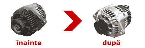 Reconditionarea alternatoarelor presupune o operatiune migaloasa si atent executata de curatare a tuturor componentelor si de inlocuire a celor defecte. In imaginile de mai jos puteti vedea un exemplu de reconditionare pentru un alternator, cu poze realizate inainte si dupa.